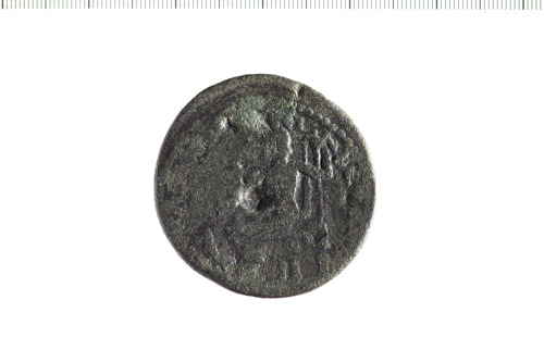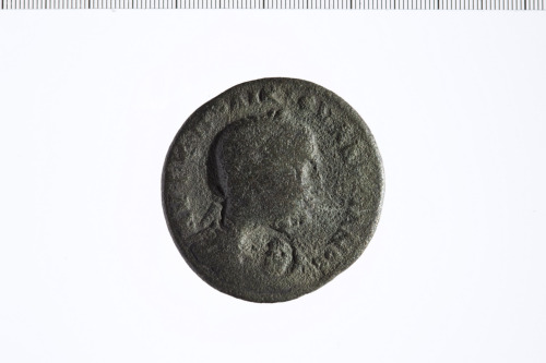 Busto laureato di Valeriano a d., paludato, corazzato, di tre quarti, di spalle.