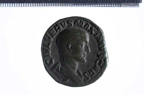 Busto a testa nuda di Massimo I a d. con paludamentum; contorno perlinato.