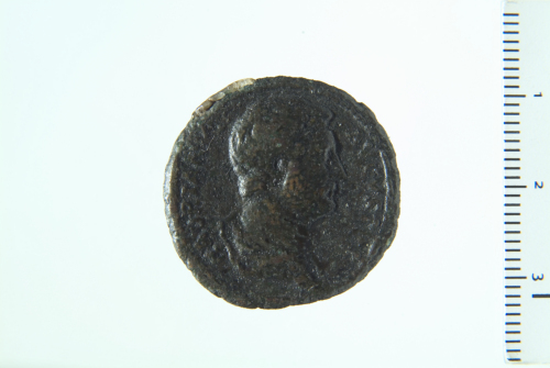 Busto a testa nuda di Adriano a d., con corazza (?) e paludamentum; contorno perlinato.
