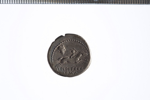 Testa laureata di Apollo a d. con i capelli fermati da un nastro. Bordo perlinato.