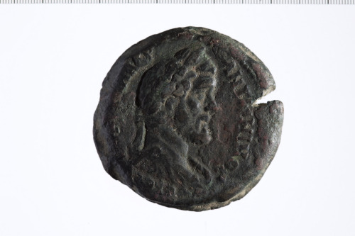 Busto laureato di Antonino Pio a d., paludato, corazzato, di tre quarti, in avanti.