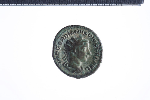 Busto radiato di Gordiano III a d. con corazza e paludamentum, di tre quarti di spalle; contorno perlinato.