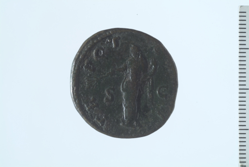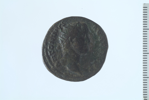 Testa radiata di Antonino Pio a d.; contorno perlinato.