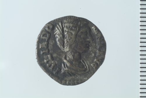 Busto drappeggiato di Giulia Domna a d.; contorno perlinato.