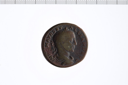 Busto di Severo Alessandro a d. laureato, corazzato e drappeggiato.