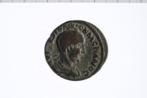 Busto laureato di Valeriano I a d., paludato, corazzato, di tre quarti, di spalle.
