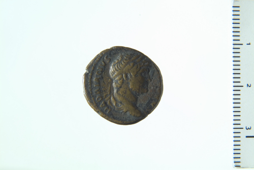 Busto laureato e drappeggiato di Adriano a d.; contorno perlinato.
