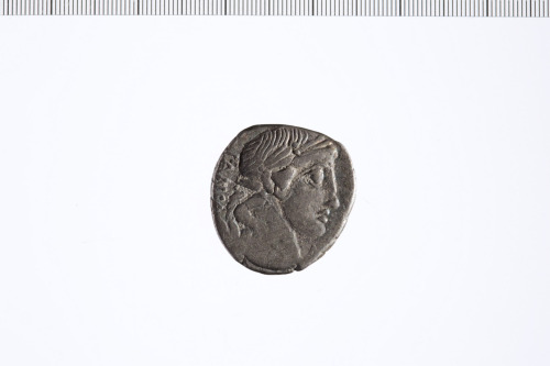 Testa laureata di Apollo a d. Contorno perlinato.