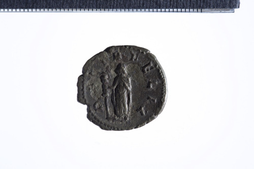 Busto radiato di Traiano Decio a d. con corazza (?) e paludamentum (?), di tre quarti di spalle; contorno perlinato (?).