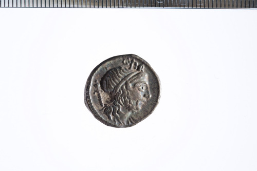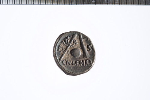 Busto drappeggiato del Genius Populi Romani a d, con i capelli legati da una benda e uno scettro dietro le spalle; c.p.