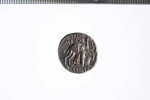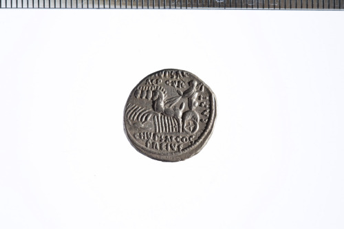 Cammello sellato a d. Davanti figura inginocchiata, con mantello e lunga tunica, che tiene nella mano s. le redini e con la d. un ramoscello d'ulivo ornato con nastro. Bordo perlinato.