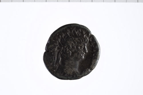 Busto radiato di Nerone a d., paludato, corazzato, di tre quarti, di spalle.