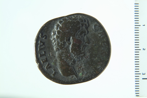 Testa nuda di Elio a d.; contorno perlinato (?).