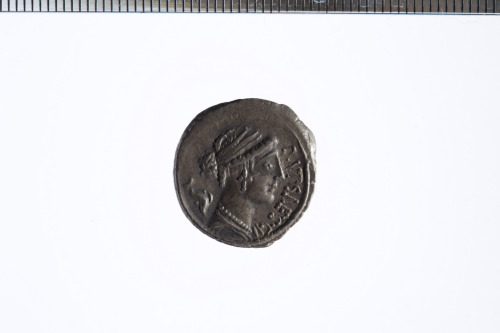 Busto drappeggiato di Leuconoe a d., con i capelli trattenuti da triplice fascia e ingioiellati; a s. un delfino. Bordo perlinato.