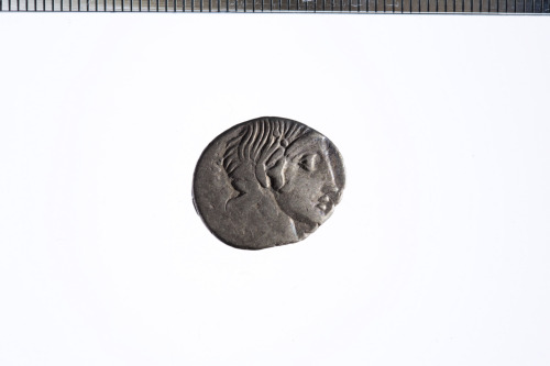 Testa laureata di Apollo a d.; sotto il mento un simbolo o lettera di controllo non meglio identificabile; c.p.
