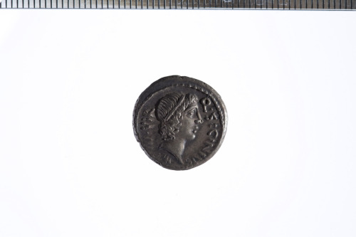 Testa di Apollo a d. con i capelli raccolti da un nastro; in basso, una stella. Bordo perlinato.