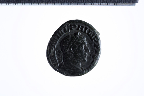 Busto laureato di Filippo I a d., con corazza (?) e paludamentum, di tre quarti di spalle; contorno perlinato.