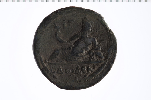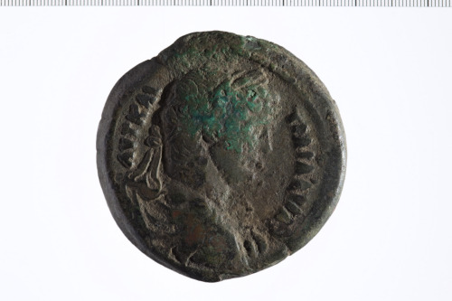 Busto laureato di Adriano a d., paludato, corazzato, di tre quarti, di spalle.