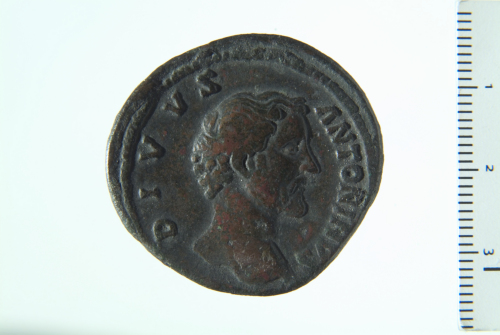 Testa nuda di Antonino Pio a d.; contorno perlinato.