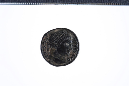 Busto laureato di Costantino a d.; contorno perlinato.