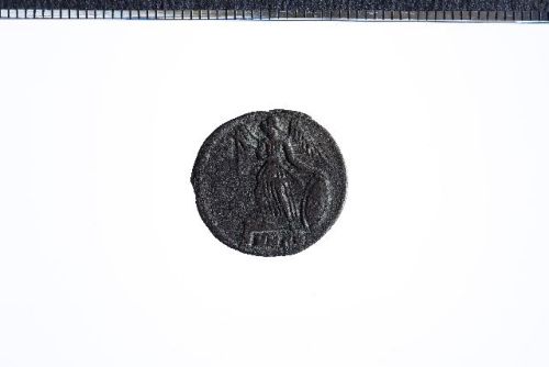 Busto elmato di Costantipoli a s. con scettro