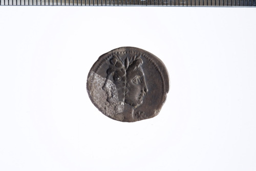 Testa laureata e gianiforme dei Dioscuri; in basso a s. un asterisco; c.p.