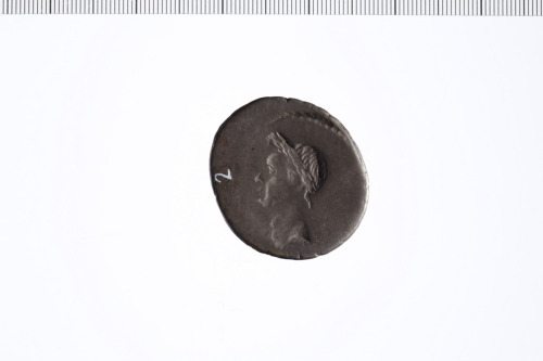 testa laureata di Apollo a d. con dietro una lira, in cerchio di perline.
