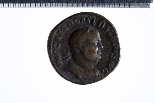 Busto laureato di Balbino a d. con corazza e paludamentum, di tre quarti in avanti; contorno perlinato.