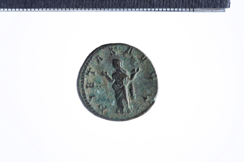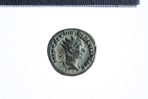 Busto radiato e drappeggiato di Treboniano Gallo a d.; contorno perlinato.