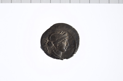 Testa laureata e diademata di Venere a d. Bordo perlinato.