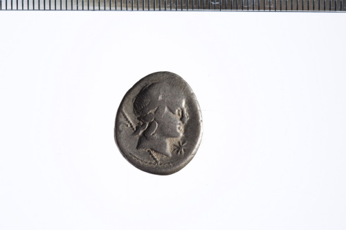 Testa laureata di Apollo ? a d. con dietro uno scettro; davanti una stella; c.p.