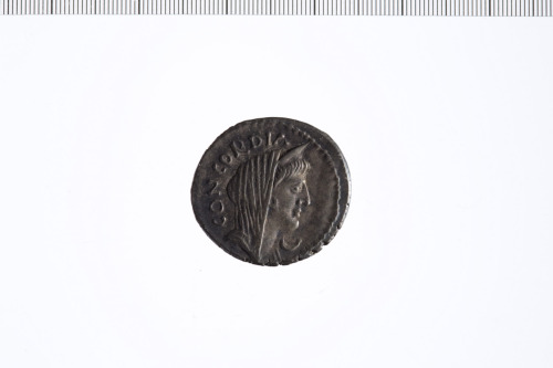 Testa velata della Concordia a d. con diadema. Bordo perlinato.