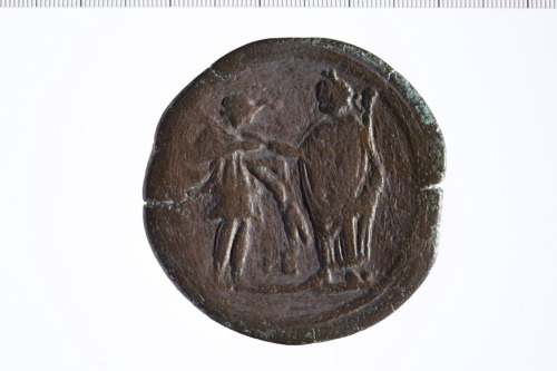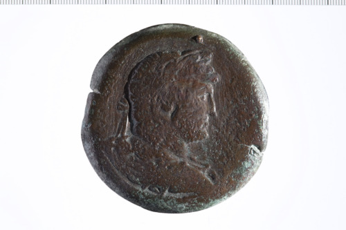 Busto laureato di Adriano a d., paludato, corazzato, di tre quarti, di spalle.
