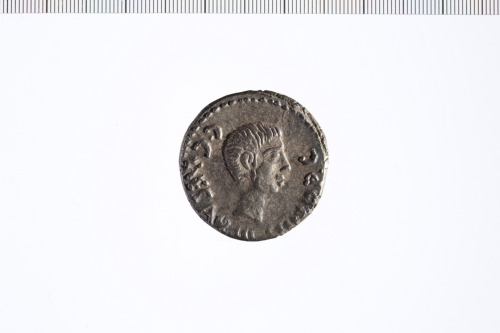 Testa di Ottaviano a d. Bordo perlinato.
