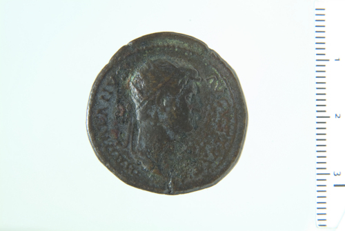 Busto radiato di Adriano a d., drappeggiato sulla spalla s. (?); contorno perlinato.