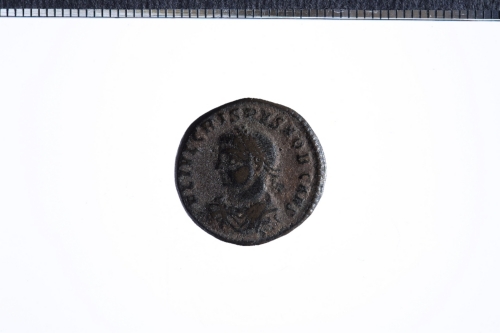 Busto drapp., corazz. e laur. di Crispo a s.