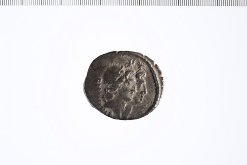 Teste dei Dioscuri a d. con i pilei sormontati da due stelle e decorati con corona d'alloro. Bordo perlinato.
