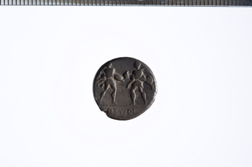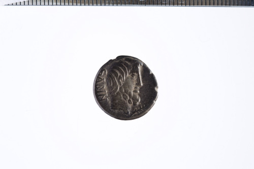 Testa barbata di Re Tazio a d.; davanti, un ramo di palma; c.p.
