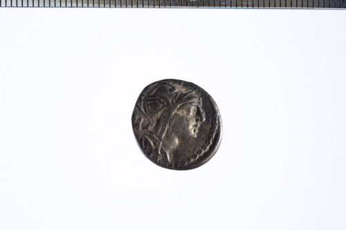 Testa galeata di Roma a d.; dietro la testa a s. M; c.p.
