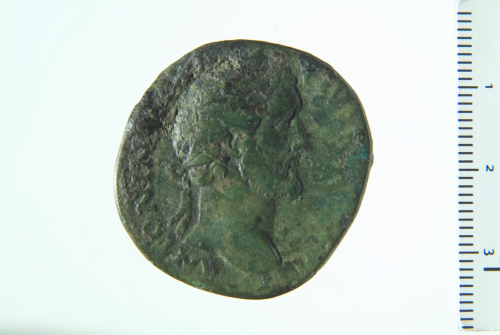 Testa laureata di Antonino Pio a d.; contorno perlinato.