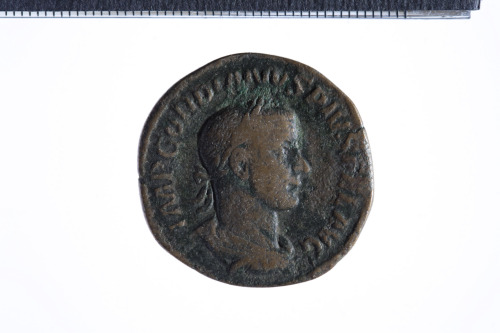 Busto laureato di Gordiano III a d. con corazza e paludamentum, di tre quarti di spalle; contorno perlinato (?).