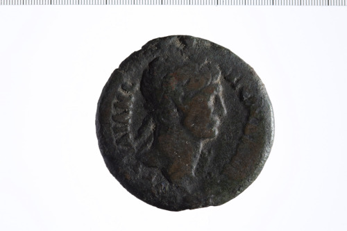 Testa laureata di Traiano a d.
