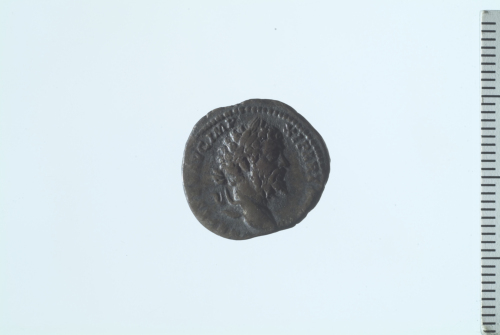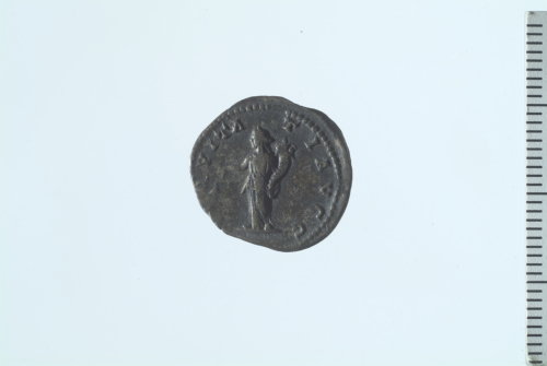 Testa laureata di Settimio Severo a d.; contorno perlinato.
