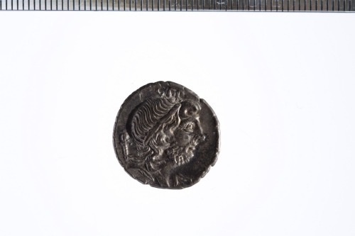Busto drappeggiato del Genius Populi Romani a d, con i capelli legati da una benda e uno scettro dietro le spalle; c.p.