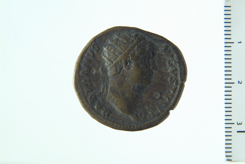 Busto radiato di Adriano a d., drappeggiato sulla spalla s.; contorno perlinato.