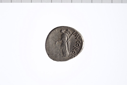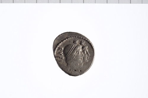 Teste dei Dioscuri a d. con i pilei sormontati da due stelle e decorati con due nastri. Bordo perlinato.
