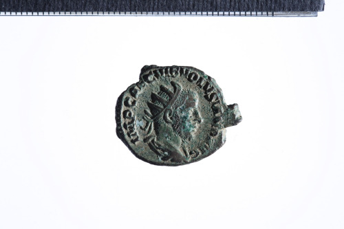 Busto radiato e drappeggiato di Volusiano a d.; contorno perlinato.