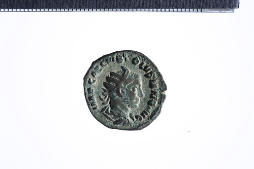 Busto radiato e drappeggiato di Volusiano a d.; contorno perlinato.