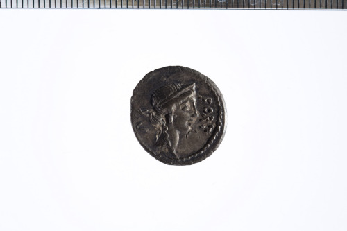 Testa della Fortuna populi Romani a d., con diadema. Bordo perlinato.