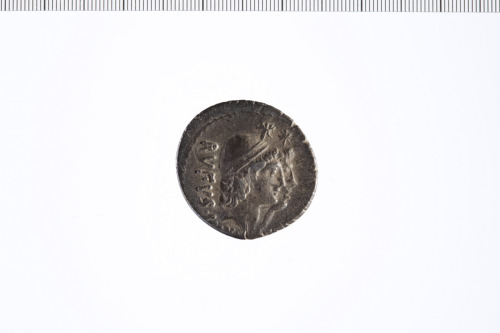 Teste dei Dioscuri a d. con i pilei sormontati da due stelle e decorati con due nastri. Bordo perlinato.